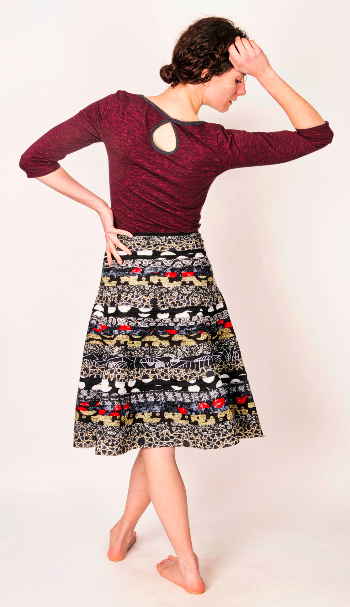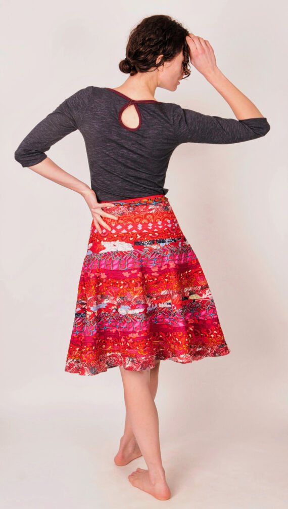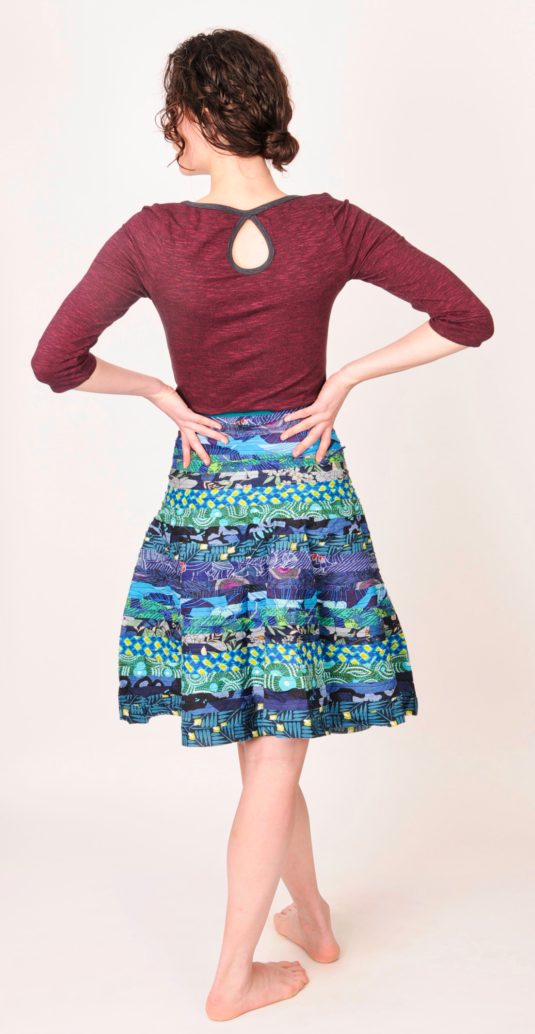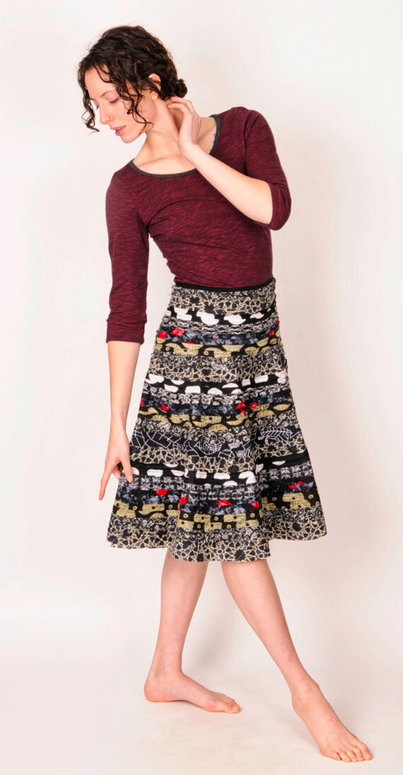 - Fitted waist with flair