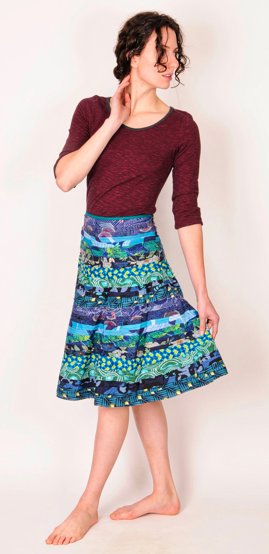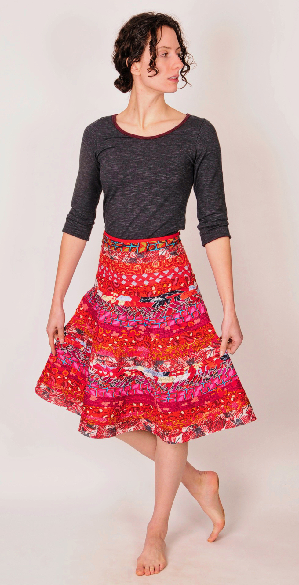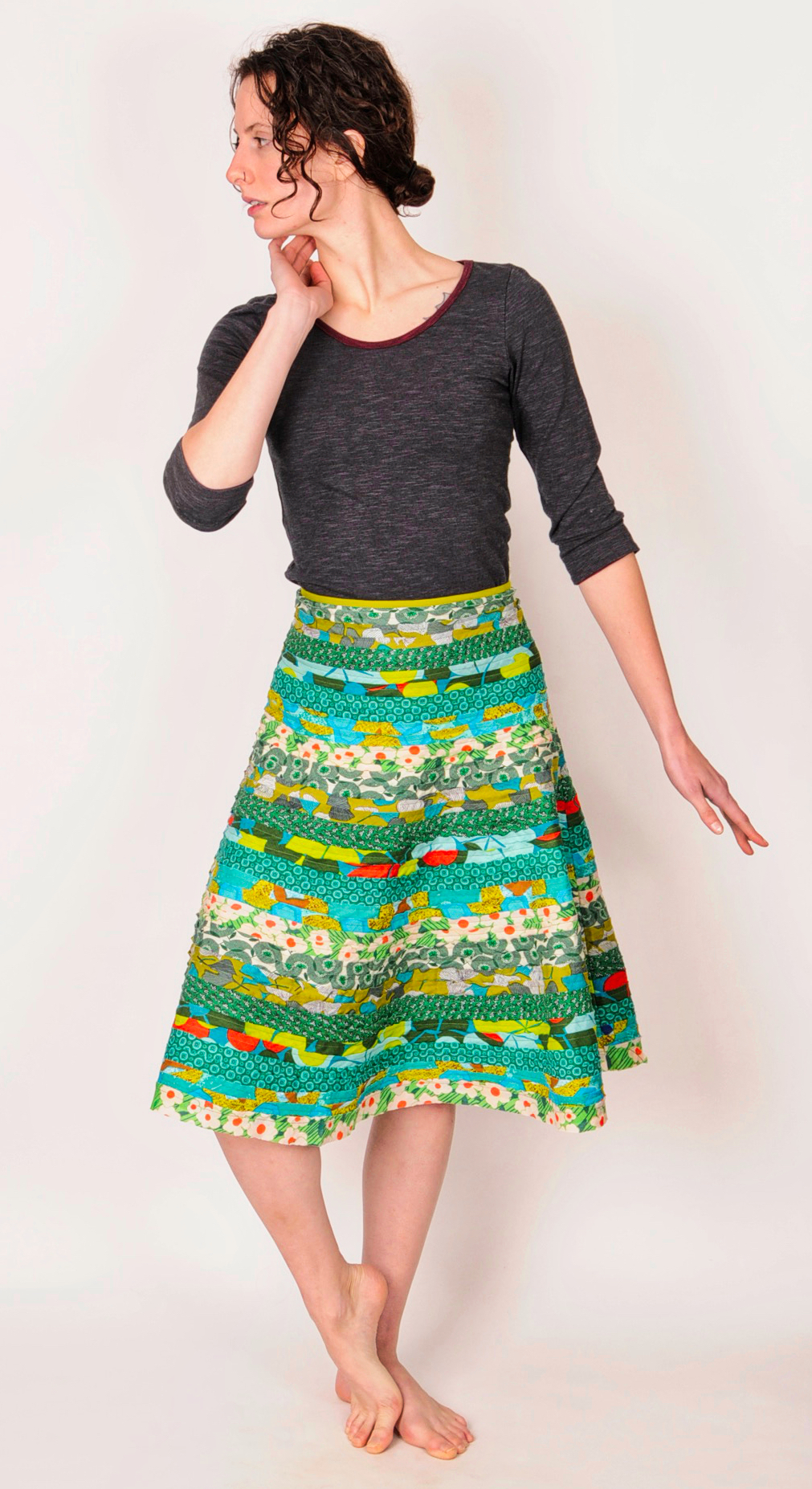 - Fitted waist with flair